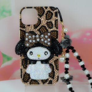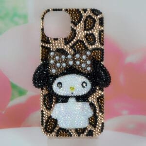 Elevate your mobile style with the stunning My Melody iPhone case in black and gold leopard print. This unique design features a luxurious blend of bold colors that will make your device stand out. It encapsulates a fun yet sophisticated look, perfect for those who love to express their flair.