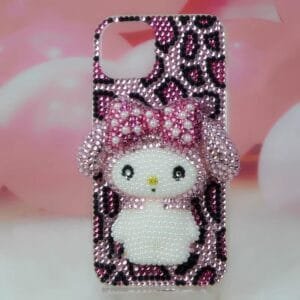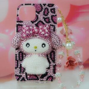 - Eye-Catching Design: Featuring a delightful pink leopard print and sparkling rhinestones, this stylish My Melody phone case is perfect for adding a touch of fun and fashion to your iPhone.