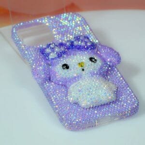 - Adorable Design: The My Melody-themed phone case showcases a playful yet elegant light purple base, paired with dazzling rhinestones that reflect light beautifully.