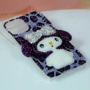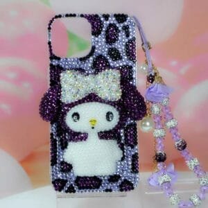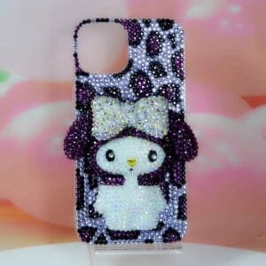 Stand out with the My Melody-themed phone case, featuring a deep purple leopard print that exudes both elegance and playfulness. The intricate rhinestone pearl face bling brings a glamorous sparkle, while the charming My Melody character adds a whimsical touch. This stylish My Melody phone case effortlessly merges fashion with fun, making it a must-have accessory.