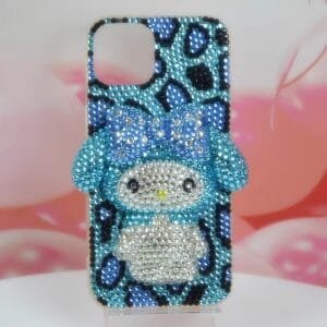 Shine bright with the My Melody Light Blue Leopard Rhinestone Face Case, showcasing dazzling rhinestones and a fashionable bling finish for extra charm.